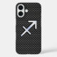 Funda iPhone 16 Sagittarius Zodiac Rótulo estilo fibra de carbono