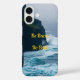 Motivacional vista al océano en el borde del acantilado con texto en el centro inspirando coraje y confianza, ideal para diseños aventureros.