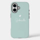 Funda iPhone 16 Sencillo Corazón Verde Pastel con nombre de guión