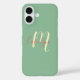 Funda iPhone 16 Sencillo, elegante, verde pálido, nombre e inicial