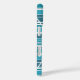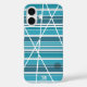 Diseño abstracto en colores azul acuático con bandas y círculos de distintos colores.Este diseño también presenta un monograma sutil en la parte inferior del funda