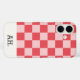 Estuche para iPhone de color rosa y rojo Mdern Checkered, perfecto para añadir un toque de encanto a tu aspecto cotidiano. Este funda de moda presenta un diseño a cuadros de moda y puede personalizarse con iniciales para un toque personal. Es un regalo ideal para mujeres o adolescentes, lo que lo convierte en una elección cuidadosa para cumpleaños, vacaciones o cualquier ocasión especial. Combinando funcionalidad con una declaración de moda, este estuche para iPhone está diseñado para proteger tu equipo mientras muestra tu estilo único. Diseño original de Ana Garza/Kardz Studio. Si tiene alguna pregunta, por favor no dude en contactarme a través del Chat Zazzle.