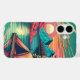 Funda iPhone 16 Tema del camping Verde azulado y rosa de la época
