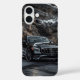 A statement of raw power against the rugged backdrop of nature. This compelling phone case features an aggressive black Mercedes-AMG sedan (distinguished by the vertical Panamericana grille), set dramatically against a towering, dark rock face. The wet ground reflects the car's menacing presence, emphasizing the wide stance and the precision of German engineering. This design perfectly fuses the industrial beauty of high-performance automotive design with the raw, uncompromising drama of a rocky landscape.