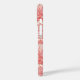 Un patrón rojo de tela de jouy de un pueblecito, con árboles, casas, iglesias y personas, crea un hermoso y tradicional diseño en este estuche para iPhone.