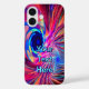 A bright, multi-colored (red, purple, blue) looping, rotational fractal image. Customize by adding your own text.