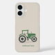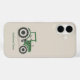 Una maleta de teléfono beige claro con un ilustracion de un tractor de granja verde y gris de estilo personalizado y texto de personalizable debajo! ¡Podría ser un regalo perfecto para un agricultor o un hombre de campo!