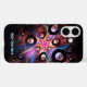 Imagen fractal multicolor con muchos toroides espaciales negativos sobre un fondo estrellado. Personalizar agregando su propio texto.