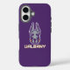 El logo de la mascota de la Universidad de Albany Great Dane muestra una elegante representación de la cabeza de un Gran Danés. El perro está ilustrado con líneas agudas y audaces en morado y gris, dándole una expresión feroz y segura de sí misma. Las orejas se sostienen alto, simbolizando la alerta y la fuerza. Debajo de la cabeza del Gran Danés está la palabra "UAlbany" escrita en letras de oro audaces y bloqueadas, delineadas en morado, reforzando la marca de la universidad. Este diseño representa a los equipos deportivos de la UAlbany, destacando el poder, la lealtad y la determinación.