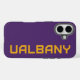 La marca de palabras de la Universidad de Albany presenta tipografía audaz y geométrica en púrpura con contornos de oro. El texto está escrito en todas las letras mayúsculas, formando un estilo fuerte y moderno que enfatiza la identidad de la universidad. Las líneas angulares y los bordes afilados del tipo de letra crean una sensación de poder y profesionalismo. El contorno dorado añade un toque de prestigio y visibilidad, haciendo que la marca destaque tanto en el fondo claro como en el oscuro. Este diseño es perfecto para marcar equipos deportivos, mercaderías y medios relacionados con la universidad.