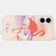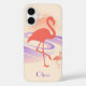 Este estuche de teléfono retro fresco y personalizado cuenta con una audaz silueta flamingo con líneas onduladas y una sombreada explosión de sol en suaves tonos pastel de melocotón, lavanda y arena.