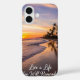 Escena inspiradora en la playa con una hermosa puesta de sol y cita edificante en la parte inferior, perfecta para la motivación diaria y la estética del caso del teléfono.