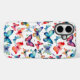 A striking iPhone case featuring a colorful watercolor pattern of butterflies set against a white background.