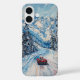 Una pintura impresionista enérgica captura una emocionante carrera invernal a través de un paisaje montañoso cubierto de nieve. Un auto de carreras rojo brillante vierte velocidades a lo largo de un sinuoso camino, pateando la nieve, mientras que los árboles verdes y los picos escarpados enmarcan el fondo. El cielo está pintado con trazos anchos y expresivos de azul y blanco helado, dando un sentido de movimiento y atmósfera fría. La textura de la pintura es gruesa y gestural, enfatizando la prisa y la energía de la escena. La combinación de audaces pinceles impresionistas y el contraste entre el rojo cálido del auto y la fresca nieve azul crea una sorprendente composición llena de emoción y movimiento.