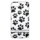 Estuche para iPhone de personalizable que presenta un patrón de huellas de pata negra. Los elementos similares están disponibles en colores.