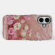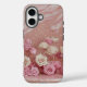 Se trata de un Funda Luxe iPhone 16 con un diseño de purpurina de mármol de color rosa color crema rosa dorado. El arte tiene rosas rosas y cremas con tallos de oro subió. Los rosas están sobre una mesa de mármol rosa. La pared está decorada con un patrón de purpurina de mármol rosa y crema subió dorado. Puede cambiar la imagen o agregar un nombre con el botón Personalizar.