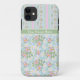 Un Funda de moda-Funda de mate a personalizar para tu iPhone 5/5s, con un patrón bonito, nostálgico de dogroses rosados en un fondo azul cielo, unido con un patrón a rayas coincidentes. Parte de la colección Posada Rosy y Pintorly.