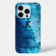 Funda minimalista de monograma moderno negro y azu
