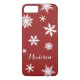 Guión de cinta de moda y copos de nieve sobre un acento de fondo rojo de arándano este funda de vacaciones para iPhone 7.