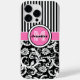 Bandas modernas monogramadas de color rosa, negro y blanco con Funda para iPhone 14 Pro Max.