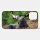 Funda de Moose iPhone 12. Magnífica foto de un majestuoso alce reclinándose en un campo de flores silvestres. Foto de Shivam Kumar.