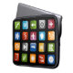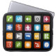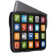 Funda para computadora portátil con iconos de aplicaciones coloridos. Idea de regalo divertida y geek para nerds de la programación de computadoras y geeks de Internet. Impresión colorida con iconos de teléfonos inteligentes.