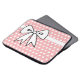 Un bonito patrón de lunares rosados y blancos y un gran lazo dan a esta funda para laptop un estilo retro. Esta funda para laptop es ideal para mujeres, niñas, adolescentes, escuela, trabajo, universidad, un regalo, etc... El diseño es de arte original.