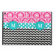 Muestre apagado su estilo en una diversión y una manera personal con este damasco, puntos y caja rosados, azules y negros del monograma del galón.