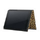 Este diseño se hace con puntos marrones del leopardo y un purpurina del oro que chispee en la parte inferior. El centro se deja para la personalización/personaliza rodeado con los diamantes de imitación blancos del diamante. (Foto impresa)