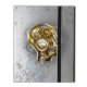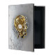 Cabeza conceptual, mecánica, humana con manómetro antiguo y engranajes metalizado sobre fondo industrial gris. Estilo Steampunk.