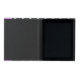 Elegante funda estilo folio iPad con soporte incorporado hecho en un punto de polka blanco y negro. Una banda rosa brillante, que baja por el borde delantero derecho y un disco rosa brillante, en el frente medio, tiene un monograma negro de una letra listo para personalizar. Hace una gran idea de regalo personalizada.