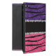 Ideas elegantes y modernas del regalo de la cebra. El estampado de animales de las rayas de la cebra del purpurina de la púrpura y del rosa (purpurina no real) modela la raya de los diamantes negros del fondo (falsos diamantes, no reales) con los corazones y los puntos personalizados con sus regalos conocidos o los regalos del monograma o sus iniciales. El ideal para los bodas de novia y del novio, casando duchas, las duchas del compromiso, fiesta de compromiso, aniversario, ahorra la fecha, el fiesta del bachelorette, cumpleaños, y mucho más atracción de letras de lujo elegantes y tradicionales