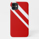 El Funda del iPhone 11 se muestra en rojo con franjas de acento blancas. Personalizar este artículo o compra tal cual.