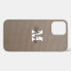 Monograma personalizado falso burlap iPhone 12 funda. Diseño de moda de país con nombre inicial. Imagen de fondo rústico.