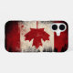 La bandera canadiense en esta imagen muestra su icónica hoja de arce roja sobre un fondo blanco con rayas verticales rojas. La estética de grunge es prominente, con una textura descolorida y salpicada dominando el diseño. Los tonos rojos son profundos y desiguales, mientras que el fondo blanco está salpicado de mechas y arañazos que le dan un aspecto anticuado. Este estilo angustiado le da a la bandera una apariencia cruda y artesanal, creando un sentido de nostalgia o rebelión en su retrato.