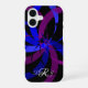 This iPhone 16 phone case features a blue purple color geometric circular theme. Personalize this product with custom text editing. iPhone model case change options are also available.