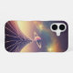 Escena retro de un planeta brillante flotando sobre colinas curvas en una suave atmósfera cósmica.