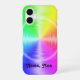 Un diseño de tinte arco iris de espectro completo con un gradiente tipo rueda de color de todos los colores, y líneas blancas onduladas y nítidas, tanto horizontales como verticales (que se hacen más grandes hacia los bordes), y circulares (en el centro y cerca del borde). Añade tu nombre o iniciales, ¡o deja en blanco!