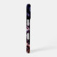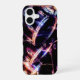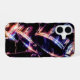 The image on this iPhone 16 Case is an original photograph by ZoeSPEAK of a drum set. The shiny black drums with their silvery rims reflect the colors of the lights in the studio, blues, reds and greens.