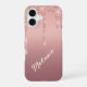 Funda Para iPhone 16 Estuche para iPhone Rosa Gold Purpurina con nombre