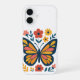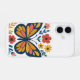 Convierte tu teléfono en una pieza única con este diseño elegante y lleno de color. Presenta una mariposa majestuosa rodeada de flores en pleno esplendor y follaje verde, logrando una mezcla perfecta entre arte y protección. La combinación de tonos naranjas, amarillos, rosados y azul profundo le da un estilo llamativo inspirado en el arte folk.