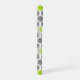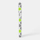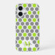 Este estuche de teléfono presenta un patrón hexágono geométrico en 3 colores: blanco, gris y verde lima. Personalízalo con un nombre en negro y un monograma en color verde, colocado en la parte inferior.