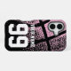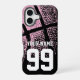 Personalizado jersey de baloncesto número presupuesto Funda iPhone 16 amigable. Diseño duradero y robusto con la impresión de bolas rosa vintage. Un gran regalo para los aficionados y jugadores. Se puede cambiar el color de fondo. Portada de teléfono de la marca Zazzle.