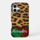Este llamativo funda cuenta con un centro de impresión de piel de leopardo feroz, un pie de felpa rojo y verde festivo y un deslumbrante guarnecido purpurina dorado que lo une todo. Este diseño logra el equilibrio perfecto entre lo elegante y lo tradicional. Este funda, hecho para usuarios conscientes de su estilo que quieren que su estuche de teléfono destaque, está a la vez a la moda y es protector.