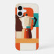 Ilustración minimalista de una olla moka en un estilo vintage geométrico, con formas suaves y una paleta cálida.