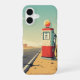 Una bomba de gasolina retro minimalista perdida en el espacio desértico abierto.