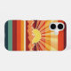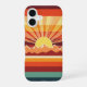Una obra de arte brillante de amanecer retro que muestra rayos cálidos detrás de formas limpias de montañas, diseñada con gradientes vintage clásicos y encanto texturizado.