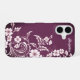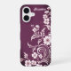 Un rico lienzo de ciruela adornado con delicadas flores blancas y acentos barrocos giratorios, que combina el encanto vintage con la elegancia atemporal.