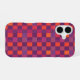 This phone case features a bold purple and red checkered geometric design. Its retro yet modern style adds a pop of color and personality, making it perfect for everyday use or as a unique gift.