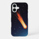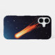 A dynamic retro night design with a glowing comet leaving a soft trail across the sky.